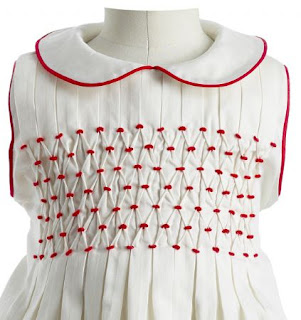 Beautifully pleated dress with a hand smocked embroidered bodice, with a contrasting ribbon detail at the hem, fully lined with a pearl button back to close and matching bloomers. Also available in girls sizes.